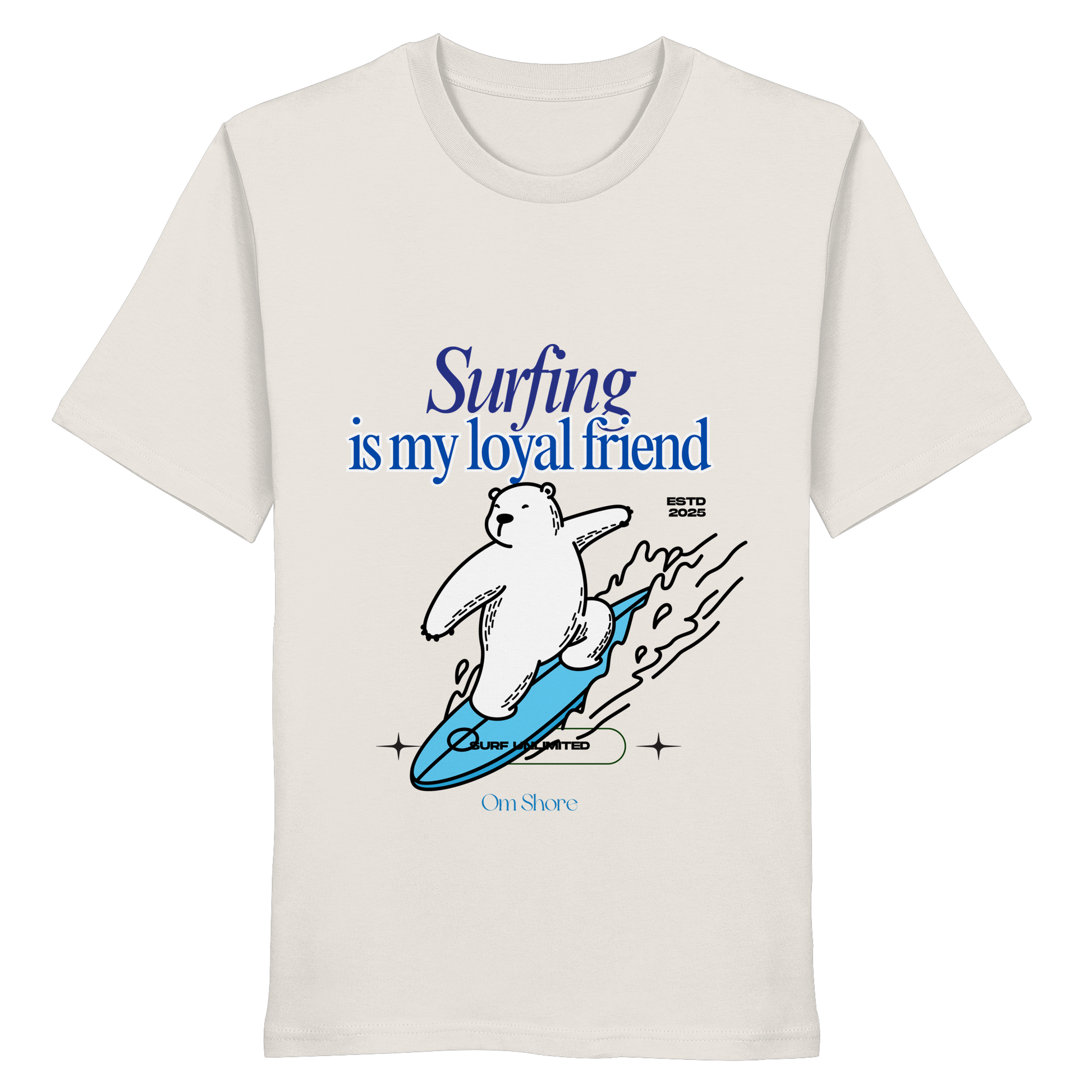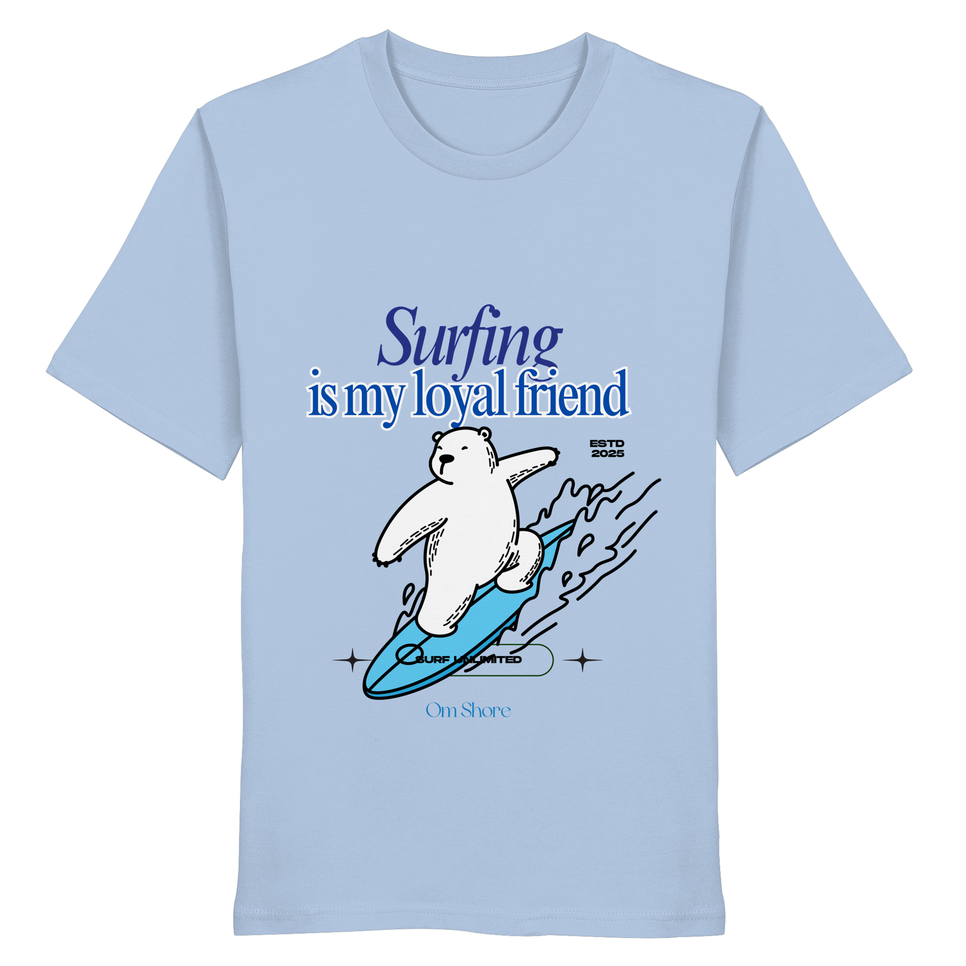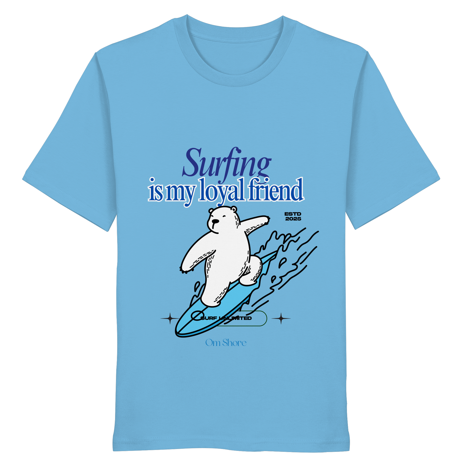 „Surfing is my loyal friend“ steht für genau dieses Gefühl: Vertrauen, Freiheit und das kindliche Staunen, das jede Welle neu entfacht.